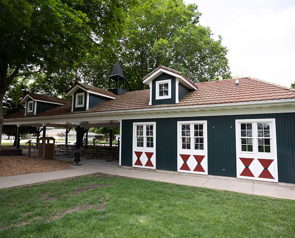Located in downtown Orange City’s Windmill Park, this shelter house has a sink, stove, and 2 refrigerators. There are 8 picnic tables available under a canopy. It is an open-air shelter house with no air conditioning or heat. Playground equipment is located next to this shelter with bathrooms behind the bandshell in the park.