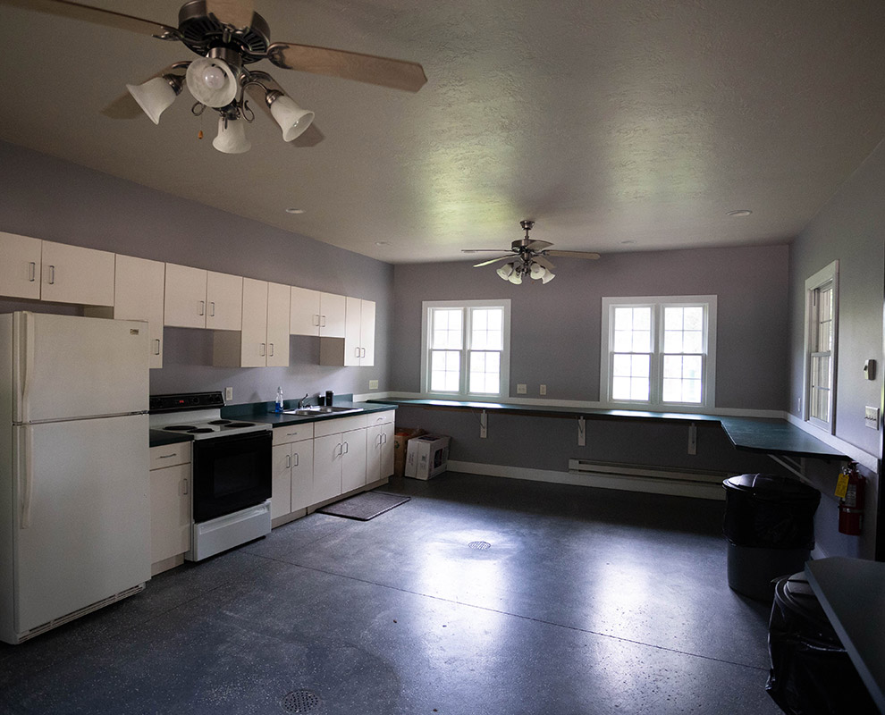 - Attached full kitchenette with stove, fridge and sink. There are also small windows for serving food